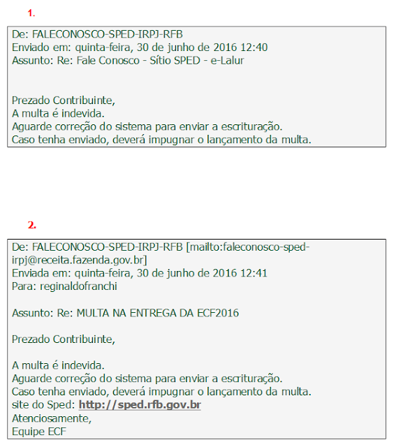 Imaginem, um escritório contábil com diversos clientes e que enviou na data de hoje (30/06/2016) as respectivas ECF – Escrituração Contábil Fiscal? Como explicar isto ao Cliente? Quem irá arcar com estas despesas? Quem irá até a RFB protocolar a impugnação? E se o profissional da área ainda não possui todas estas informações que detalhamos acima?